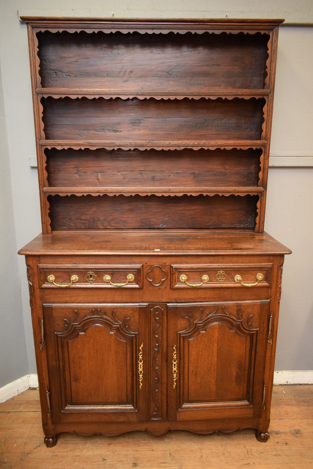 18TH CENTURY FRENCH PROVINCIAL OAK DRESSER, C.1770'S (231H x 137W x 54D CM) (PLEASE NOTE THIS HEAVY ITEM MUST BE REMOVED BY CARRIERS AT THE CUSTOMER'S EXPENSE. LEONARD JOEL STAFF CANNOT ASSIST CARRYING THIS ITEM) (X-LARGE ITEM)