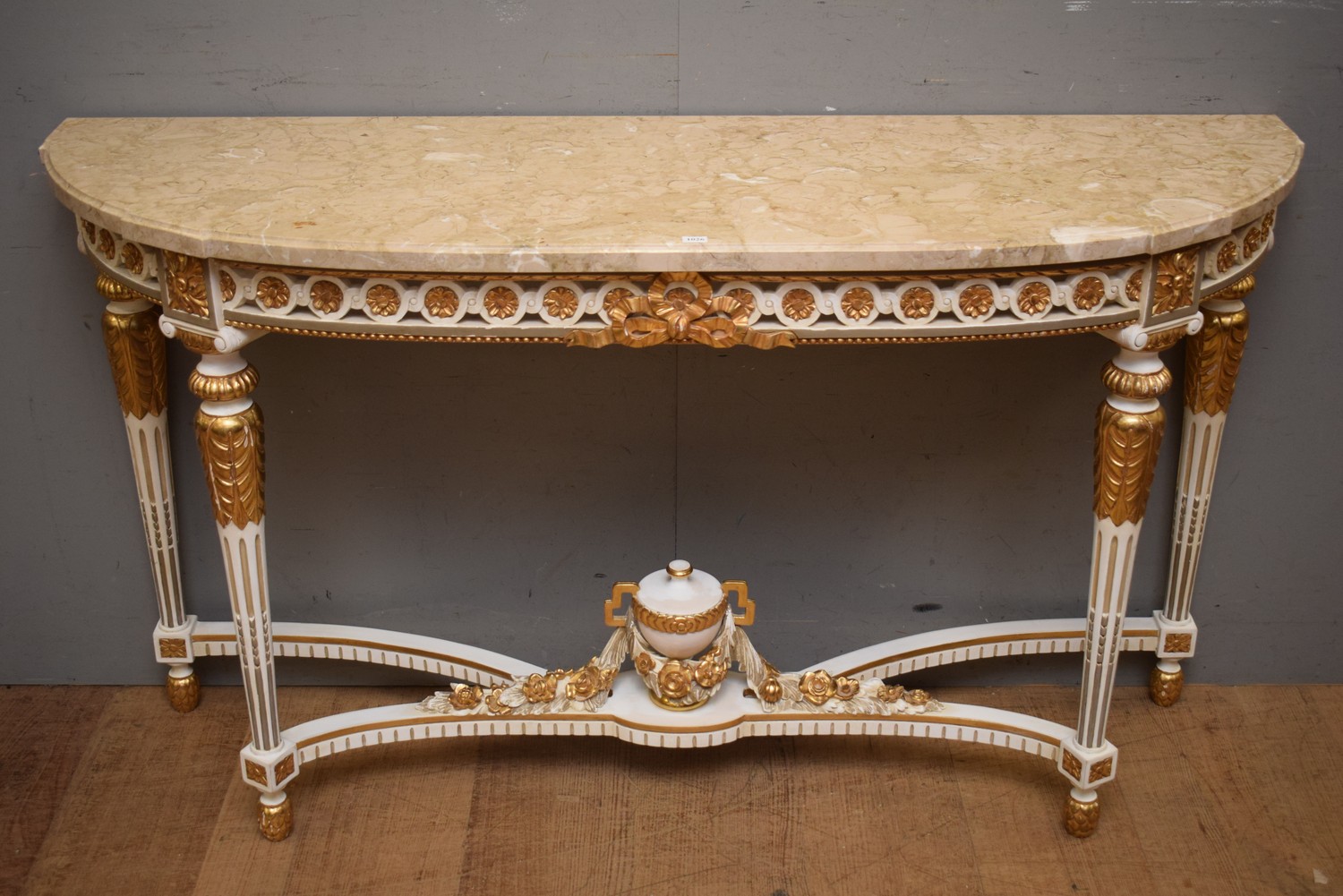 IMPRESSIVE FRENCH LOUIS XVI WATER GILDED CONSOLE TABLE, EX HOTEL BRISTOL PARIS (84H x 151W x 46D CM) (PLEASE NOTE THIS HEAVY ITEM MUST BE REMOVED BY CARRIERS AT THE CUSTOMER'S EXPENSE. LEONARD JOEL STAFF CANNOT ASSIST CARRYING THIS ITEM) (X-LARGE ITEM)
