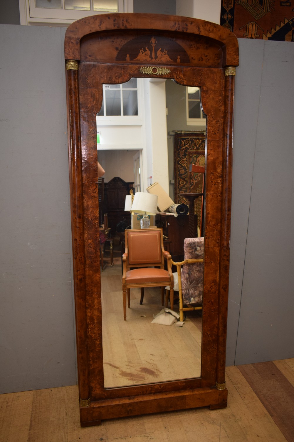 FRENCH NEOCLASSICAL BURR AMBOYNA HALL/DRESSING MIRROR, C.1900'S (218H x 88W CM) (PLEASE NOTE THIS HEAVY ITEM MUST BE REMOVED BY CARRIERS AT THE CUSTOMER'S EXPENSE. LEONARD JOEL STAFF CANNOT ASSIST CARRYING THIS ITEM) (X-LARGE ITEM)