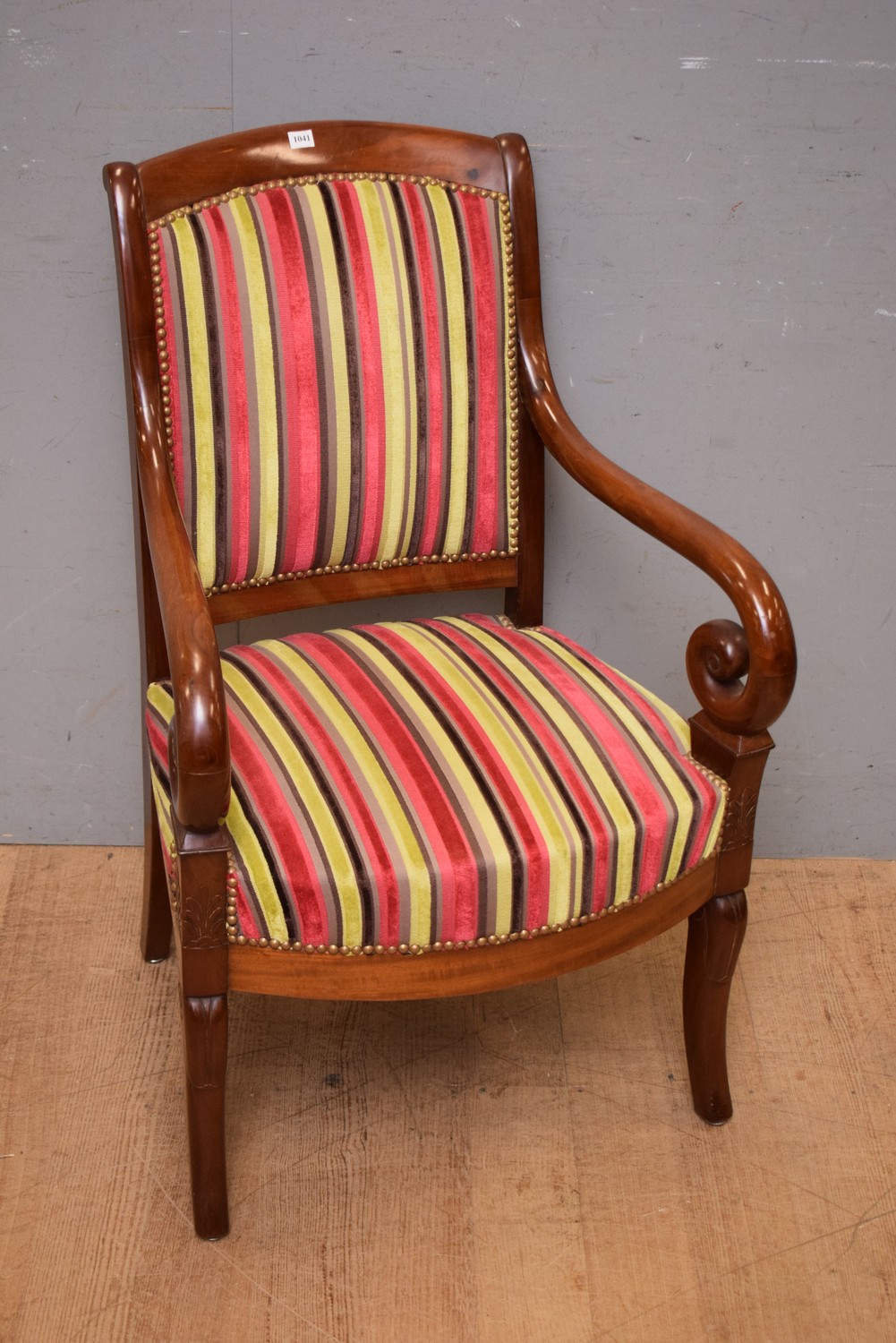 FRENCH EMPIRE PERIOD SOLID MAHOGANY FAUTEIL, C.1820'S (94H x 59W x 52D CM) (LEONARD JOEL DELIVERY SIZE: MEDIUM)