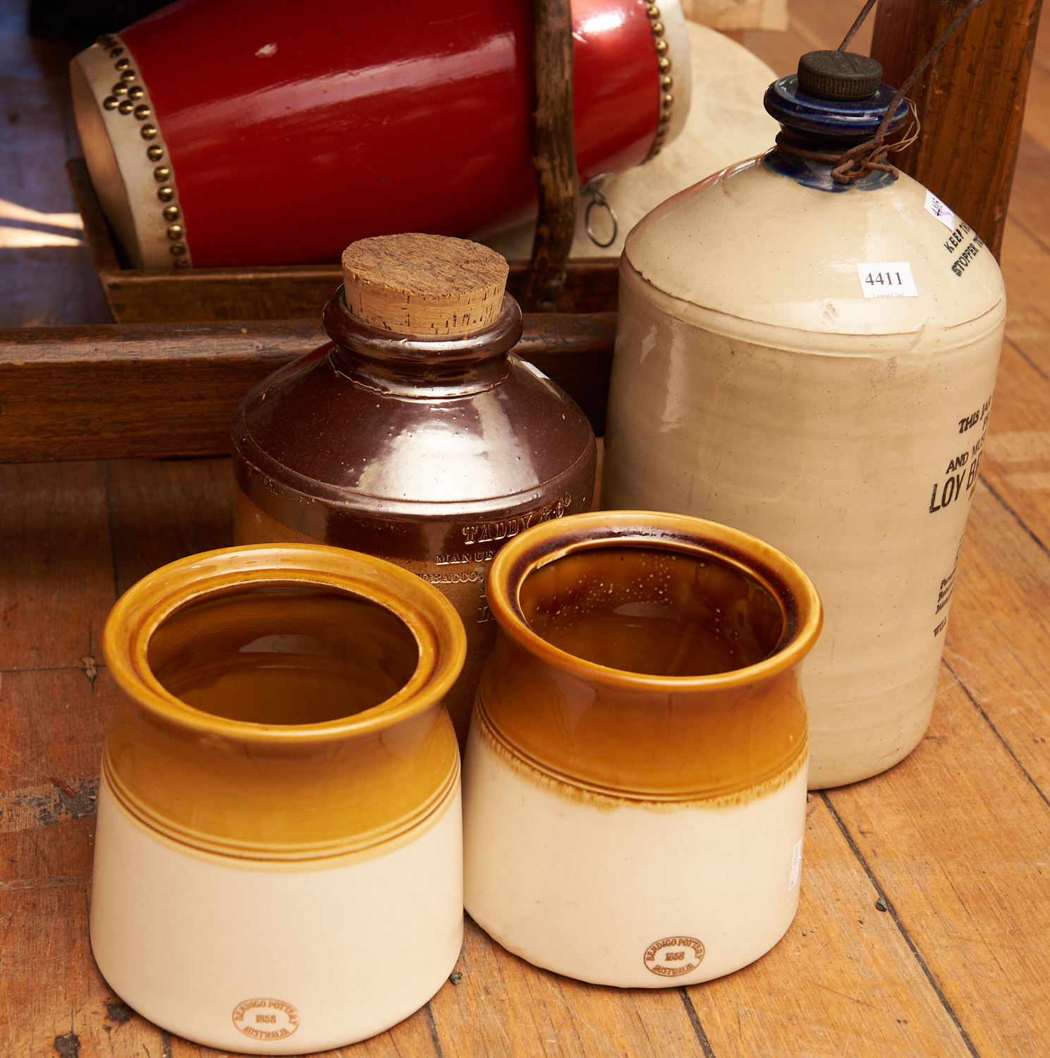 A GROUP OF EARTHENWARE POTS INCLUDING BENDIGO, LEONARD JOEL LOCAL DELIVERY SIZE: SMALL