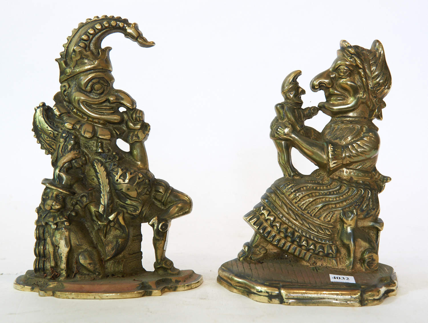 TWO BRASS DOORSTOPS H.28CM, LEONARD JOEL LOCAL DELIVERY SIZE: SMALL