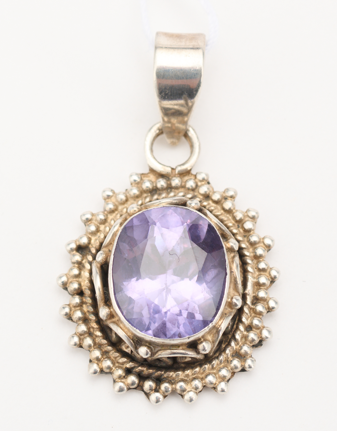 A SYNTHETIC CORUNDUM PENDANT IN STERLING SILVER