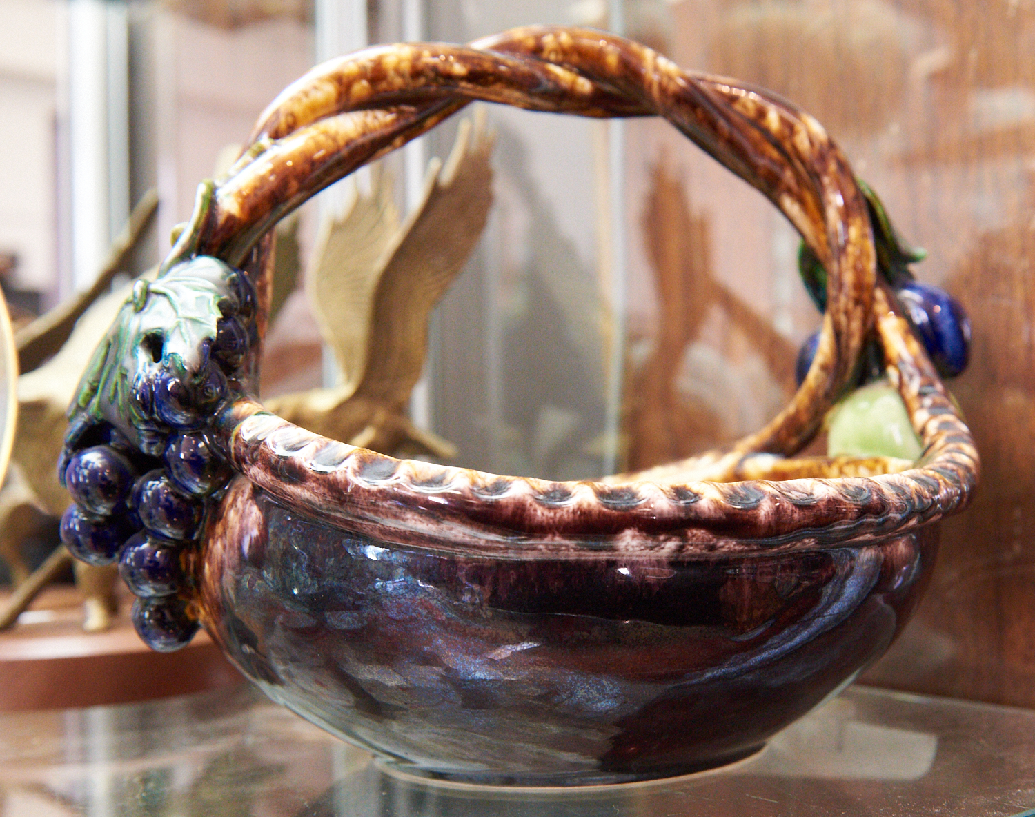 A MAJOLICA CERAMIC BASKET H.25CM, LEONARD JOEL LOCAL DELIVERY SIZE: SMALL