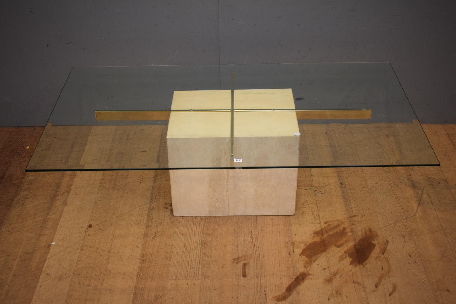 A CONTEMPORARY GLASS AND STONE COFFEE TABLE (A/F) (37H x 131W x 70D CM) (PLEASE NOTE THIS HEAVY ITEM MUST BE REMOVED BY CARRIERS AT THE CUSTOMER'S EXPENSE. LEONARD JOEL STAFF CANNOT ASSIST CARRYING THIS ITEM) (X-LARGE ITEM)