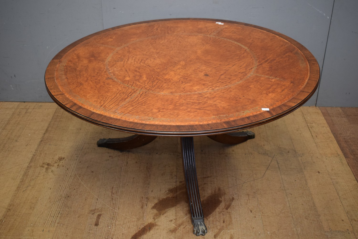 A VICTORIAN LEATHER INLAID COFFEE TABLE ( 48H X 101 DIAMETER CM) (LEONARD JOEL DELIVERY SIZE: LARGE)