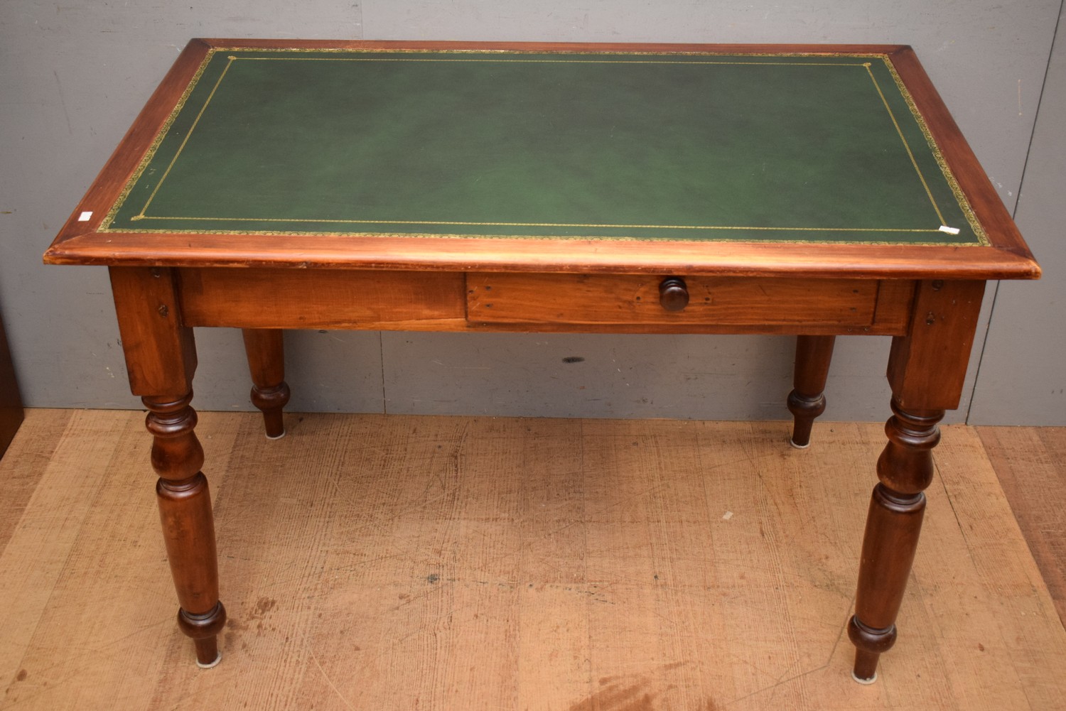 A LEATHER INLAID KAURI PINE SINGLE DRAWER DESK (A/F) (74H X 116W X 72D CM)