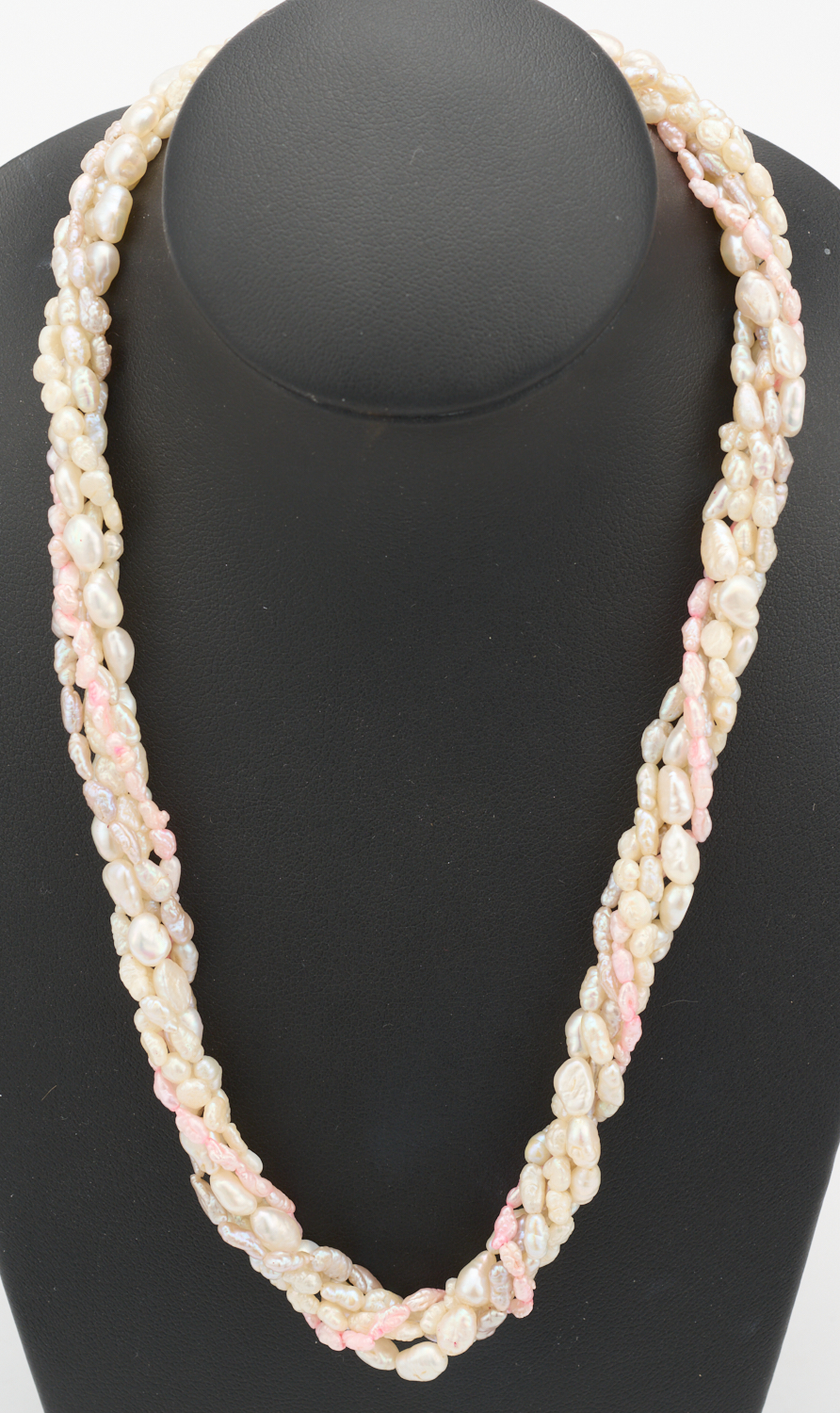 A FRESHWATER PEARL NECKLACE WITH 9CT GOLD CLASP, LENGTH APPROXIMATELY 380MM
