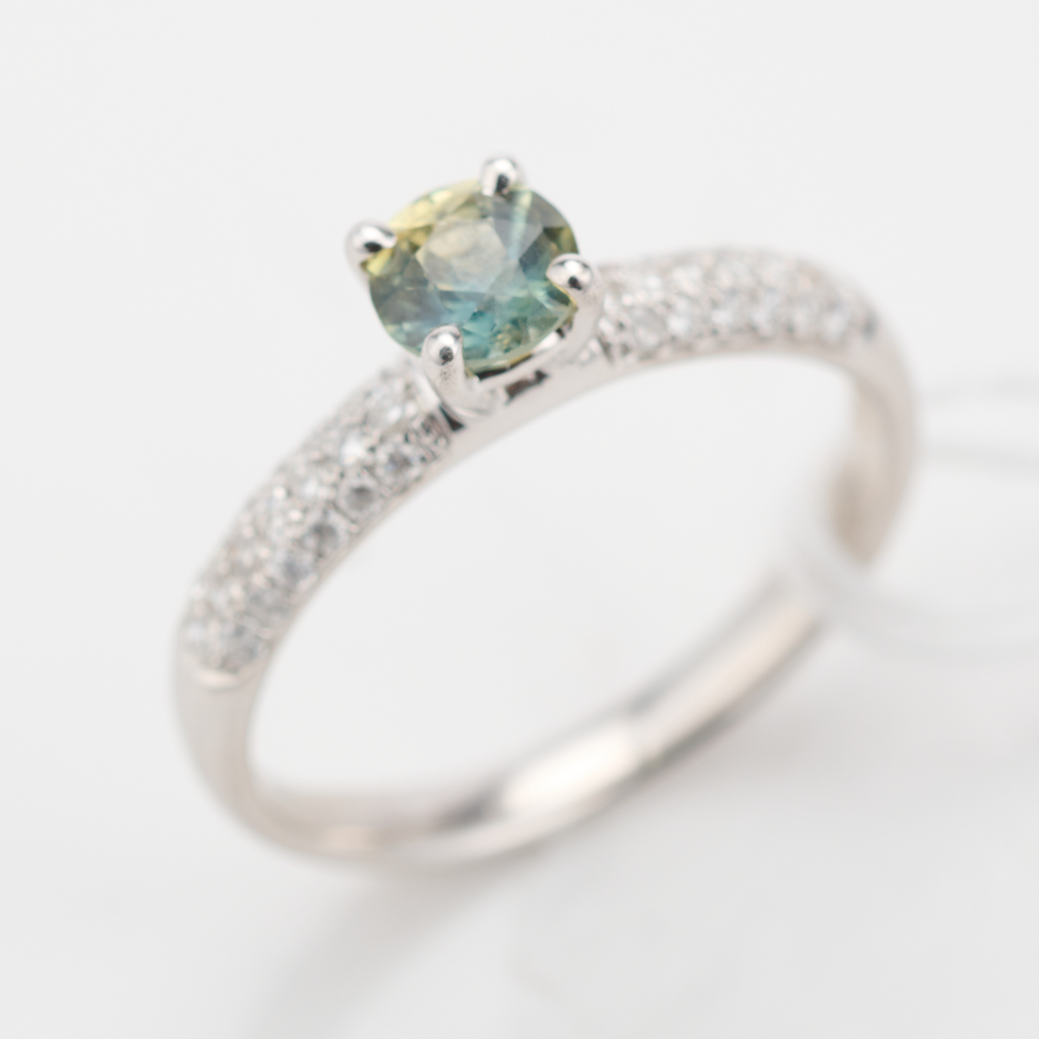 A PARTI SAPPHIRE AND DIAMOND RING IN 18CT WHITE GOLD, RING SIZE M/N, 2.7GMS