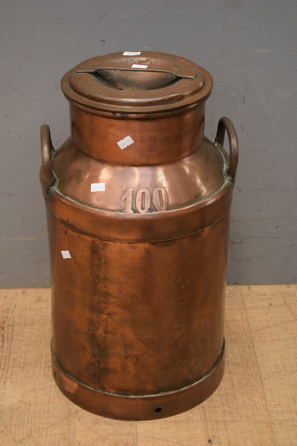 RARE 19TH CENTURY FRENCH SOLID COPPER MILK URN WITH ORIGINAL HANDLES AND LID AND APPLIED 100 (H53 CM) (LEONARD JOEL DELIVERY SIZE: MEDIUM)