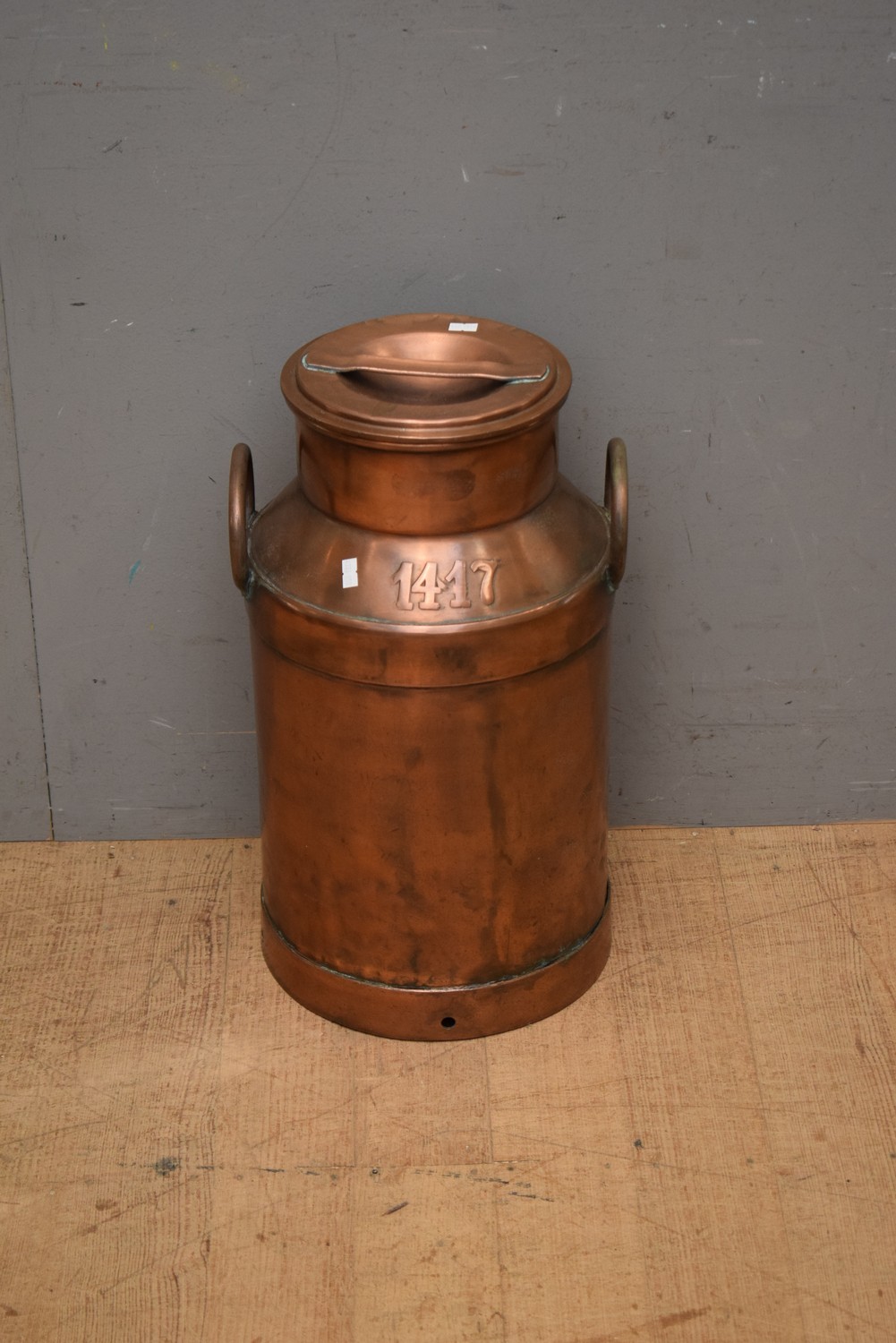 RARE 19TH CENTURY FRENCH SOLID COPPER MILK URN WITH ORIGINAL HANDLES AND LID AND APPLIED 1417 (H53 CM) (LEONARD JOEL DELIVERY SIZE: MEDIUM)
