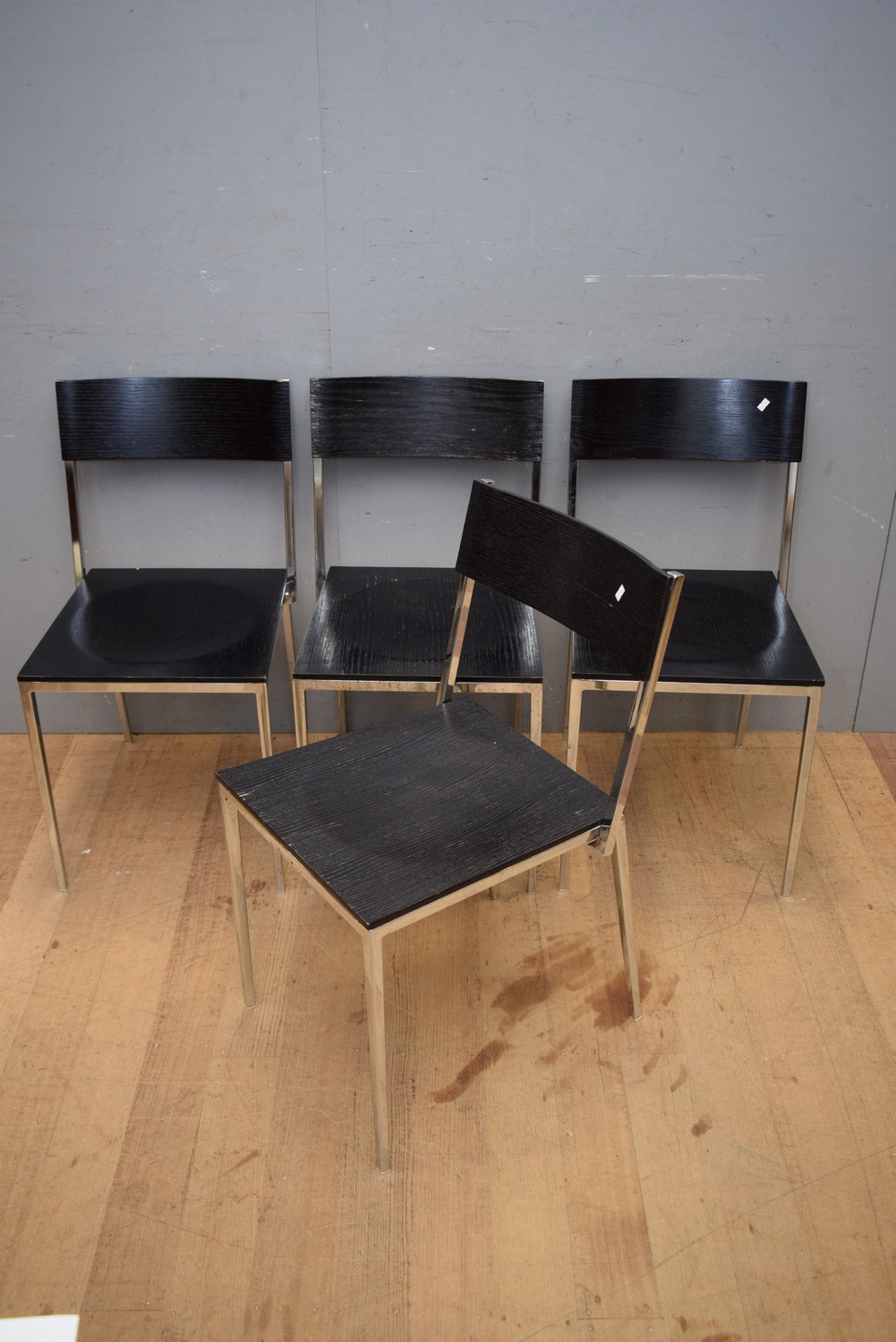 SET OF FOUR CONTEMPORARY CHROME AND WOODEN DINING CHAIRS (A/F) ( 82H X 42W X 51D CM) (LEONARD JOEL DELIVERY SIZE: LARGE)