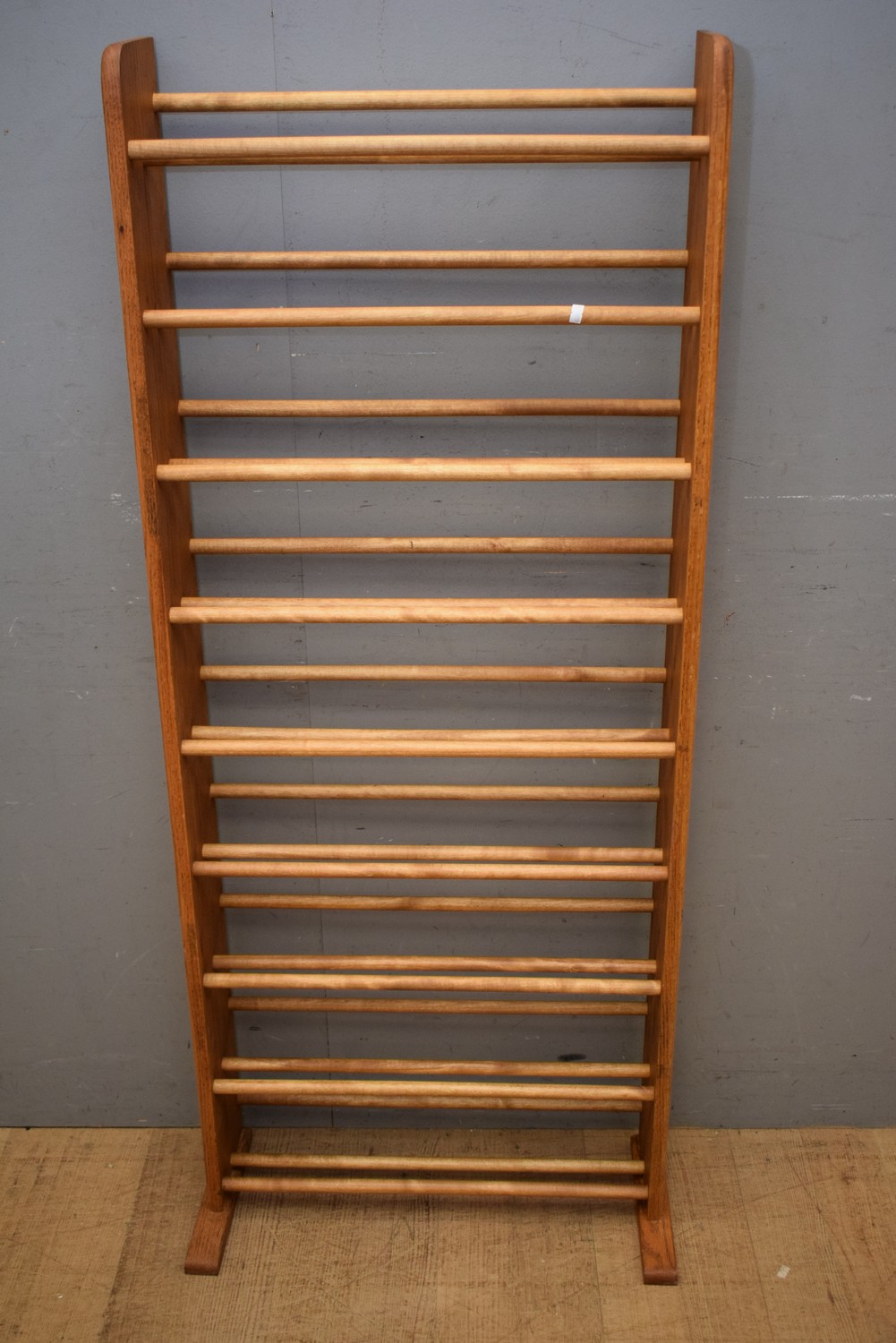 SUPERB AUSTRALIAN MADE RETRO SOLID OAK 1950S SHOE RACK ( 152H X 62W X 27D CM) (LEONARD JOEL DELIVERY SIZE: LARGE)