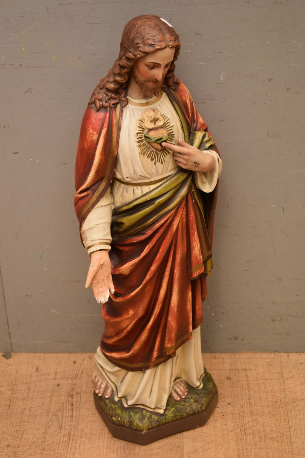A FINE LARGE 19TH CENTURY FRENCH PAINTED PLASTER FIGURE OF JESUS WITH REMOVABLE HAND (90CM H ) (LEONARD JOEL DELIVERY SIZE: LARGE)