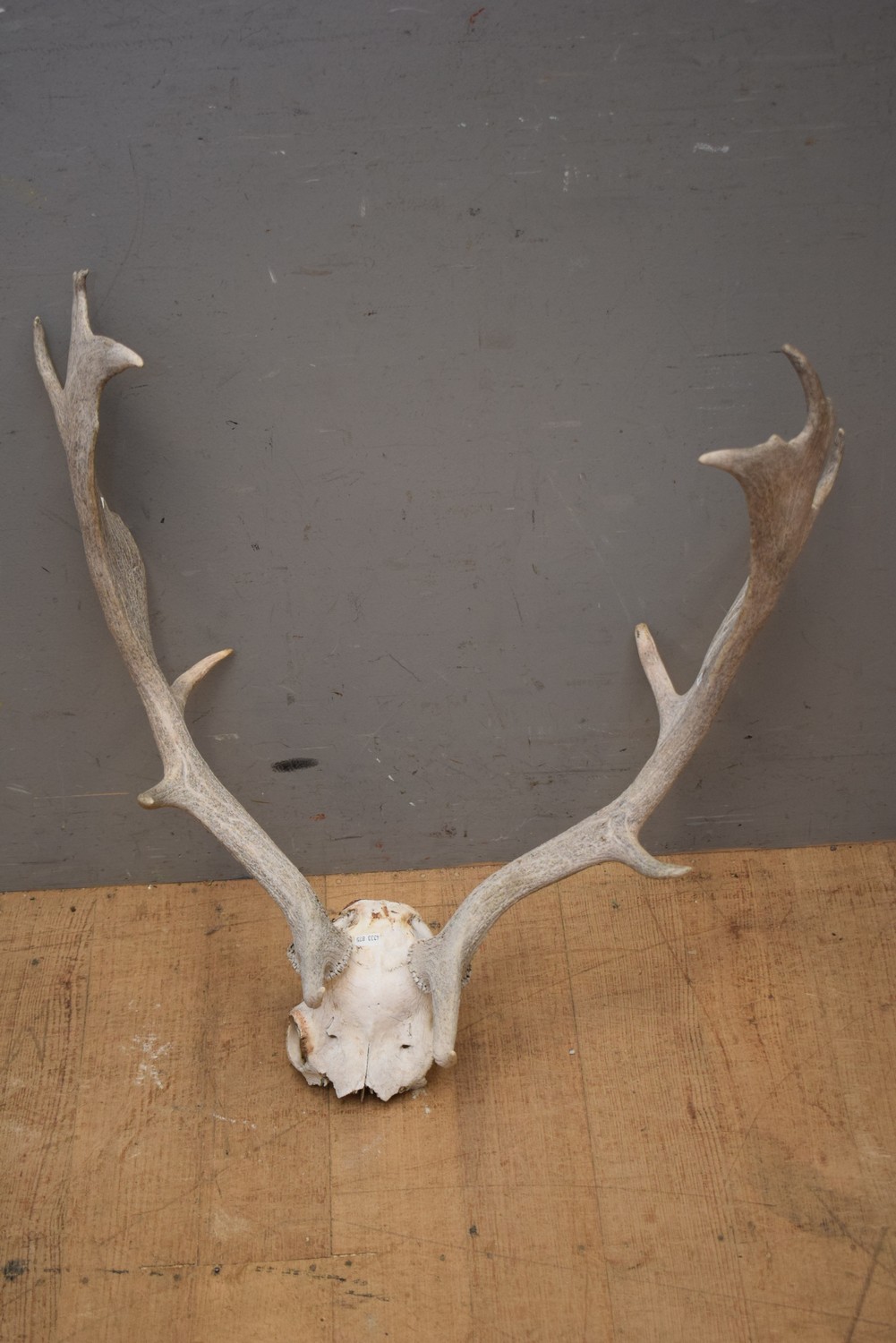 PAIR OF LARGE NATURAL TASMANIAN FALLOW DEER SKULL MOUNT ANTLERS ( 65H CM) (LEONARD JOEL DELIVERY SIZE: MEDIUM)