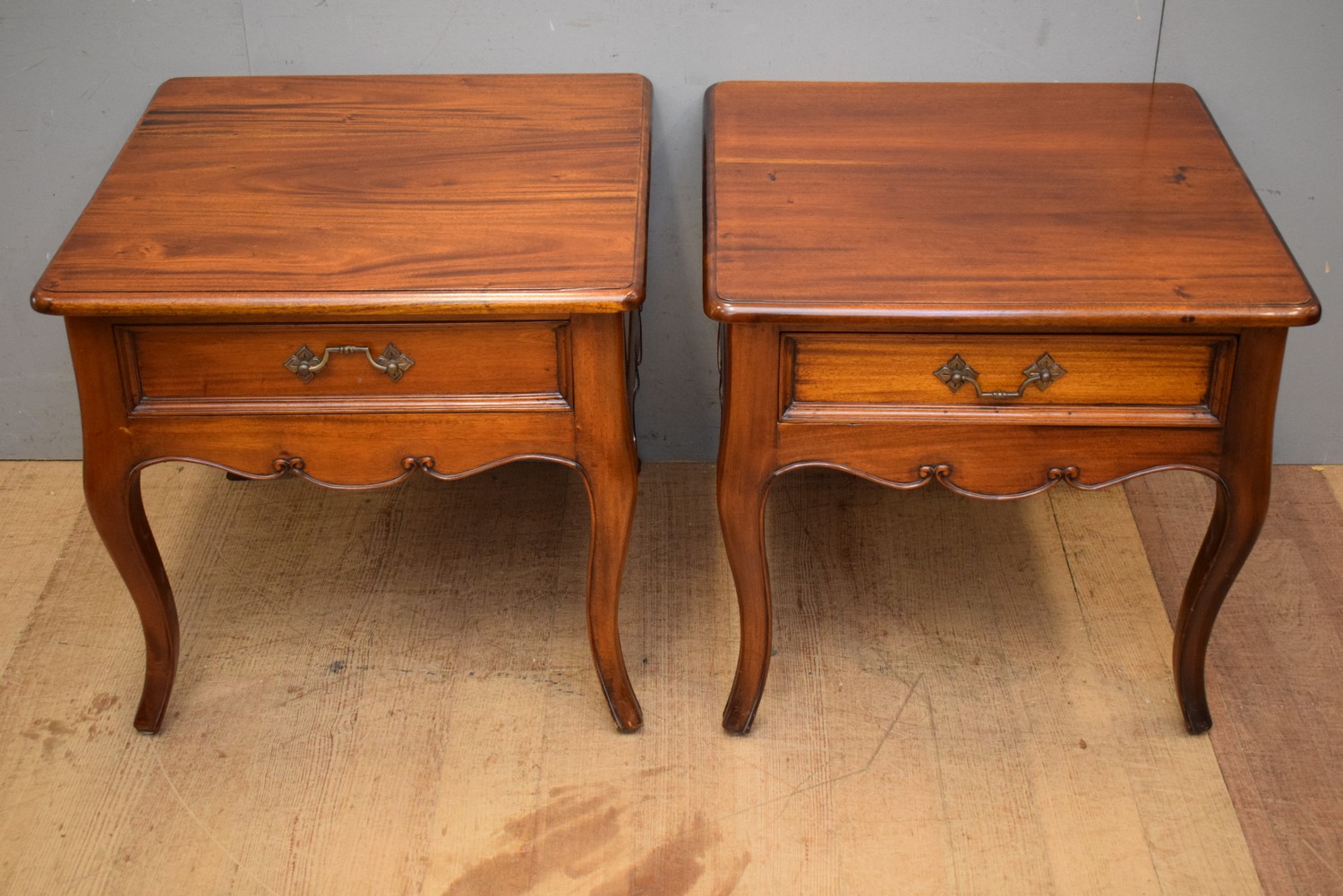 A PAIR OF SINGLE DRAWER FRENCH PROVINCIAL STYLE SIDE TABLES ( 57H X 60W X 60D CM) (LEONARD JOEL DELIVERY SIZE: LARGE)