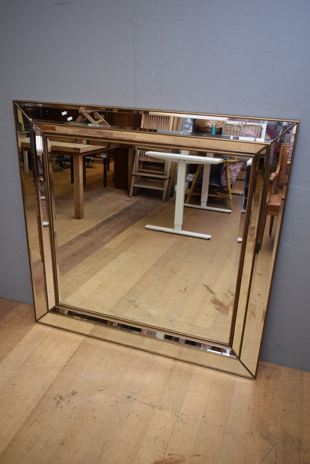 A LARGE WALL MIRROR WITH GILT EFFECT BEADING (126H x 129W CM) (LEONARD JOEL DELIVERY SIZE: LARGE)
