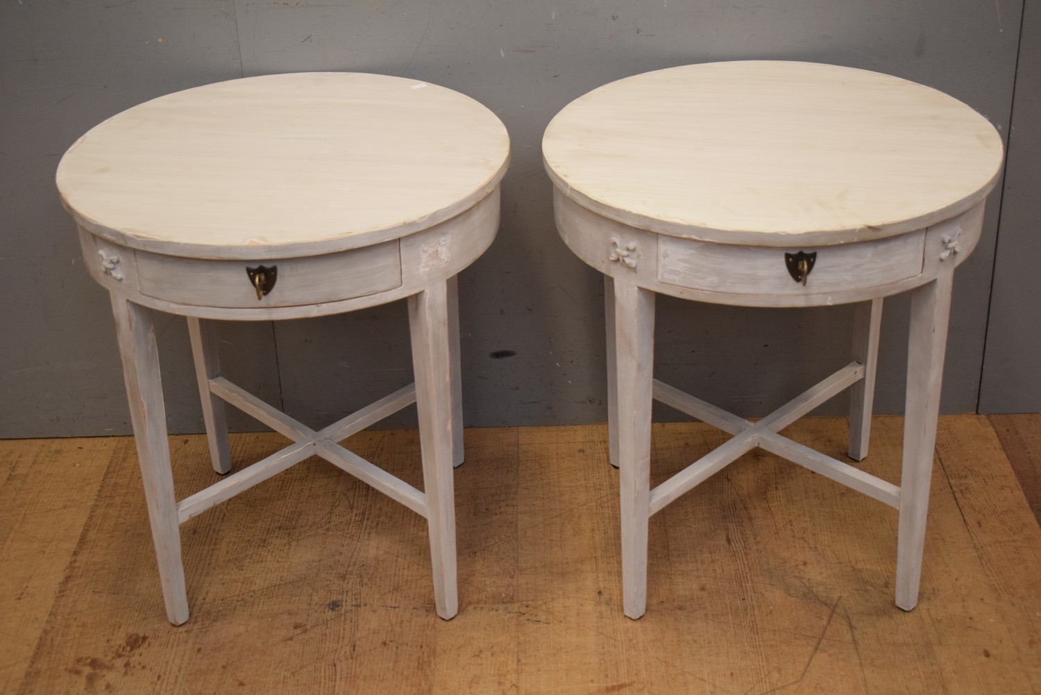 A PAIR OF GUSTAVIAN FRENCH STYLE PAINTED SIDE TABLES ( 61H X 57 DIAMETER CM ) (LEONARD JOEL DELIVERY SIZE: LARGE)