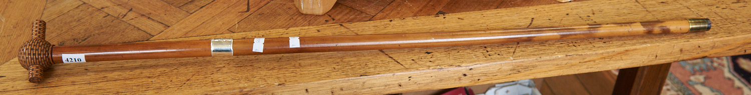 A STERLING SILVER MOUNTED CANE WALKING STICK L.87CM, LEONARD JOEL LOCAL DELIVERY SIZE: SMALL