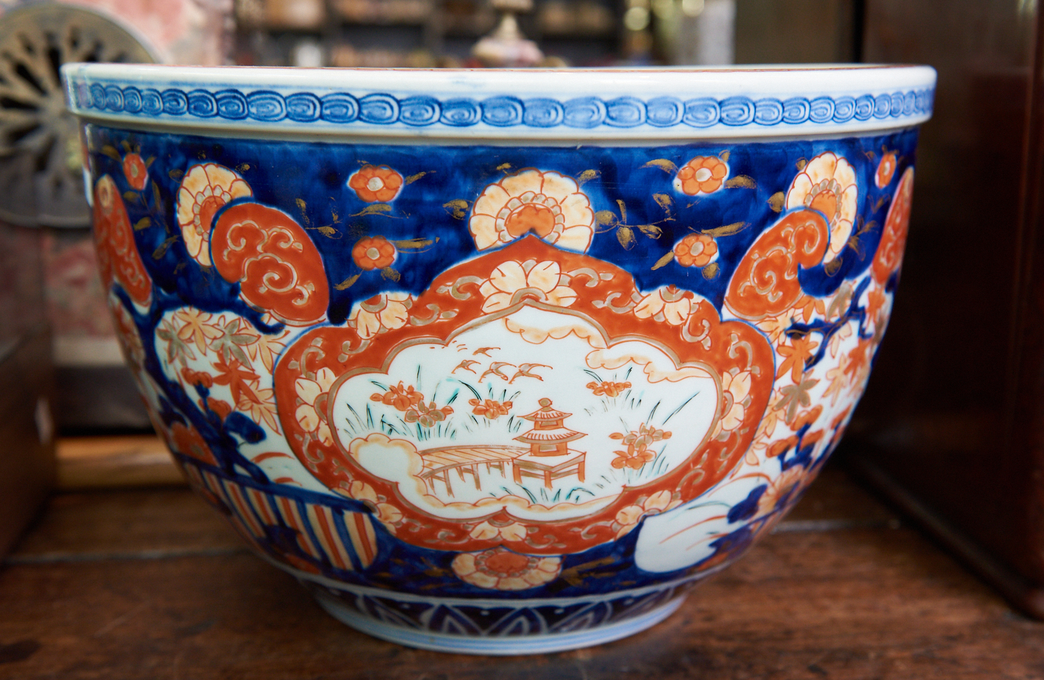 AN IMARI PATTERN FISHBOWL OR PLANTER DIA.37CM, LEONARD JOEL LOCAL DELIVERY SIZE: SMALL