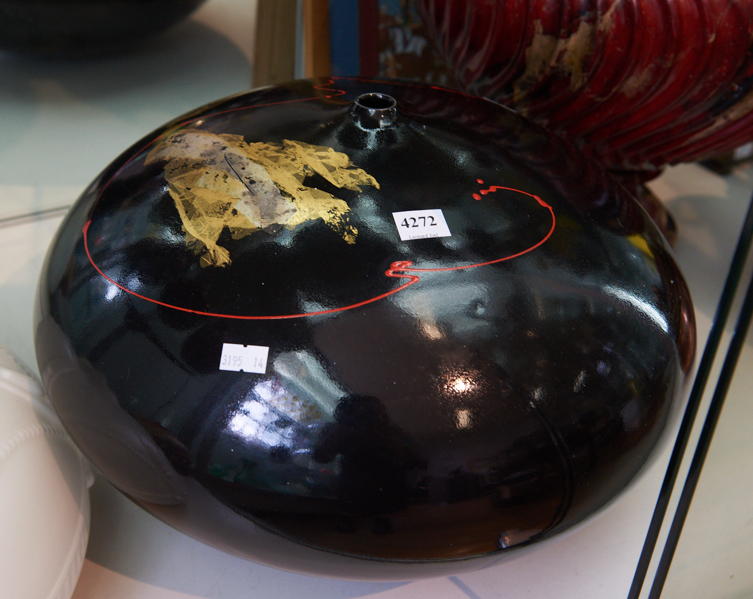AN AUSTRALIAN POTTERY VASE WITH GILT DETAILING DIA.37CM, LEONARD JOEL LOCAL DELIVERY SIZE: SMALL