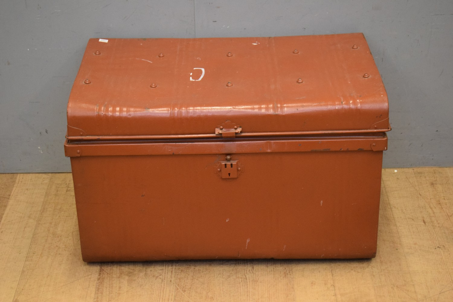 A STEEL TRAVELLER'S TRUNK (A/F) (52H x 83W x 558D CM) (LEONARD JOEL DELIVERY SIZE: LARGE)