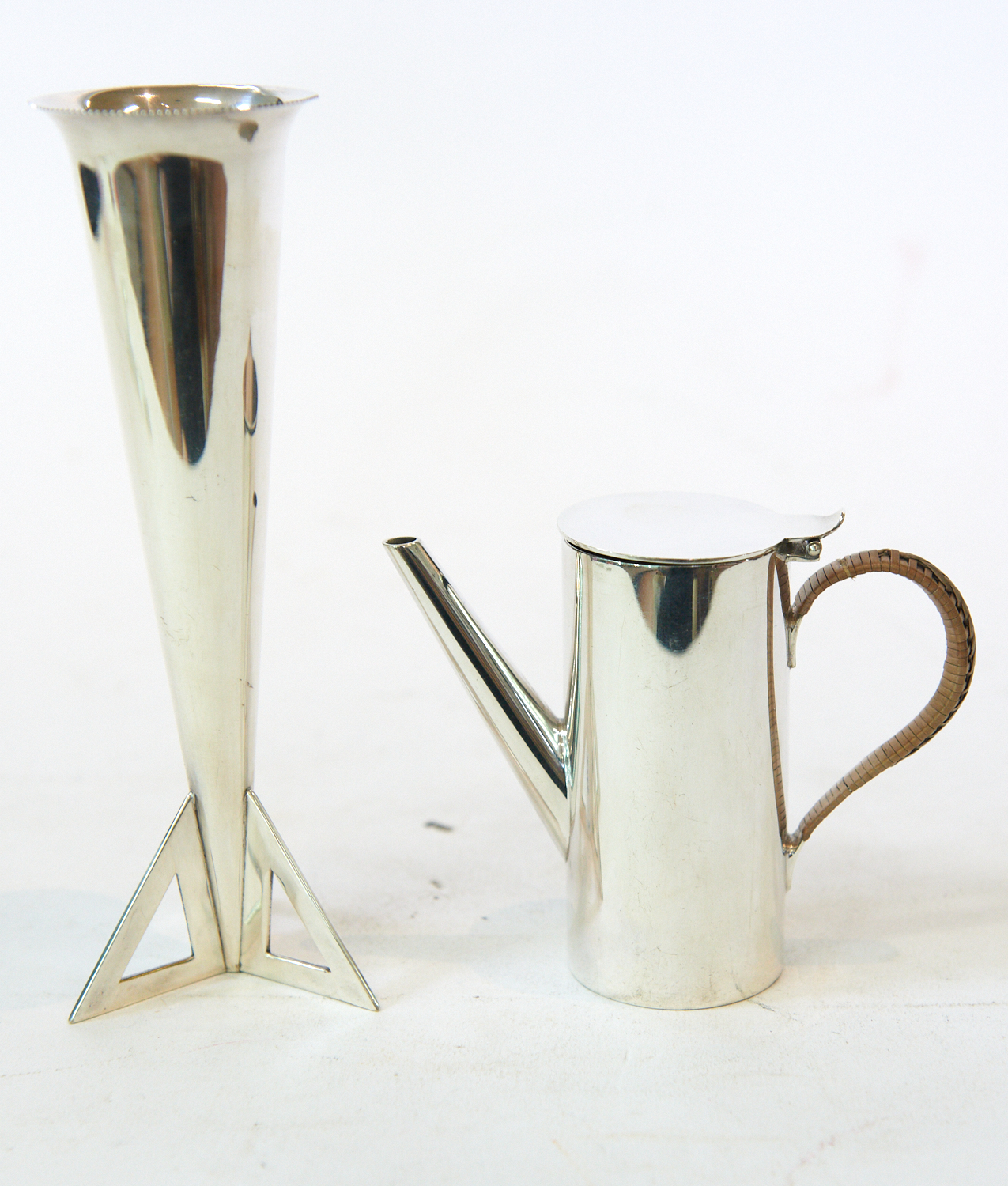 A SILVERPLATED HUKIN AND HEATH COFFEE POT TOGETHER WITH ART DECO VASE (18.5 CM H), LEONARD JOEL LOCAL DELIVERY SIZE: SMALL