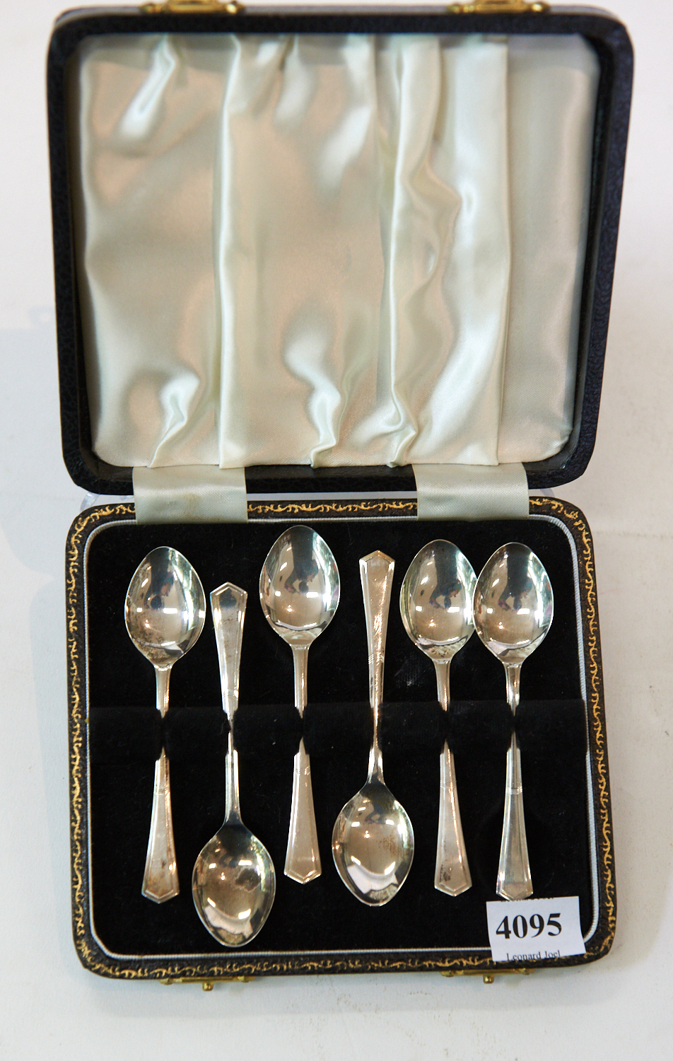 SIX SILVER SPOONS, BOXED, LEONARD JOEL LOCAL DELIVERY SIZE: SMALL