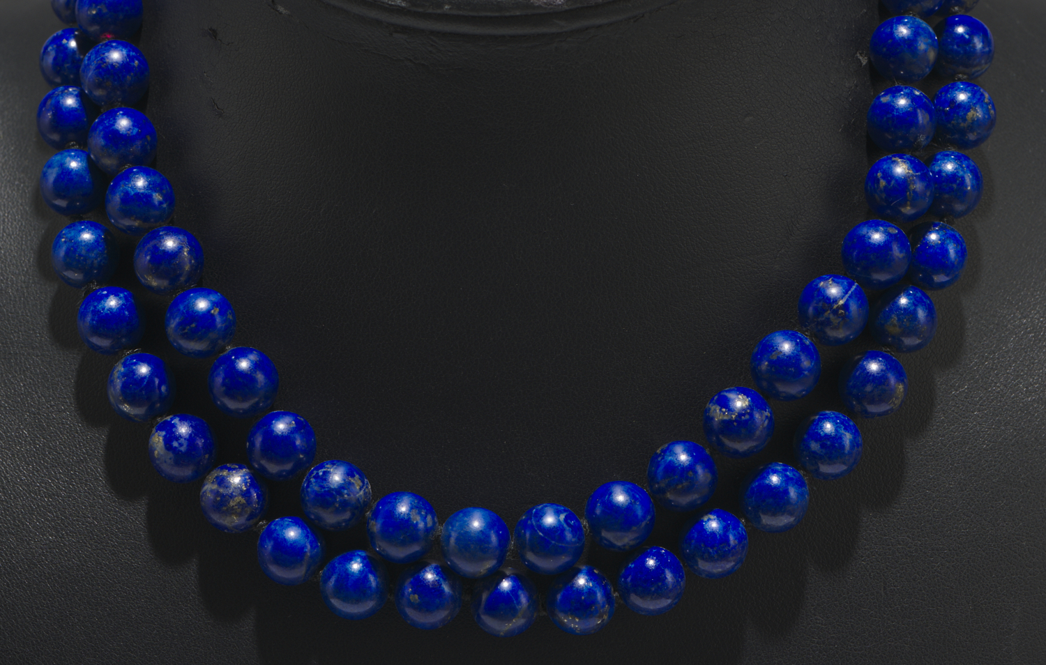 A STRAND OF LAPIS LAZULI BEADS TO A CLASP IN 14CT GOLD