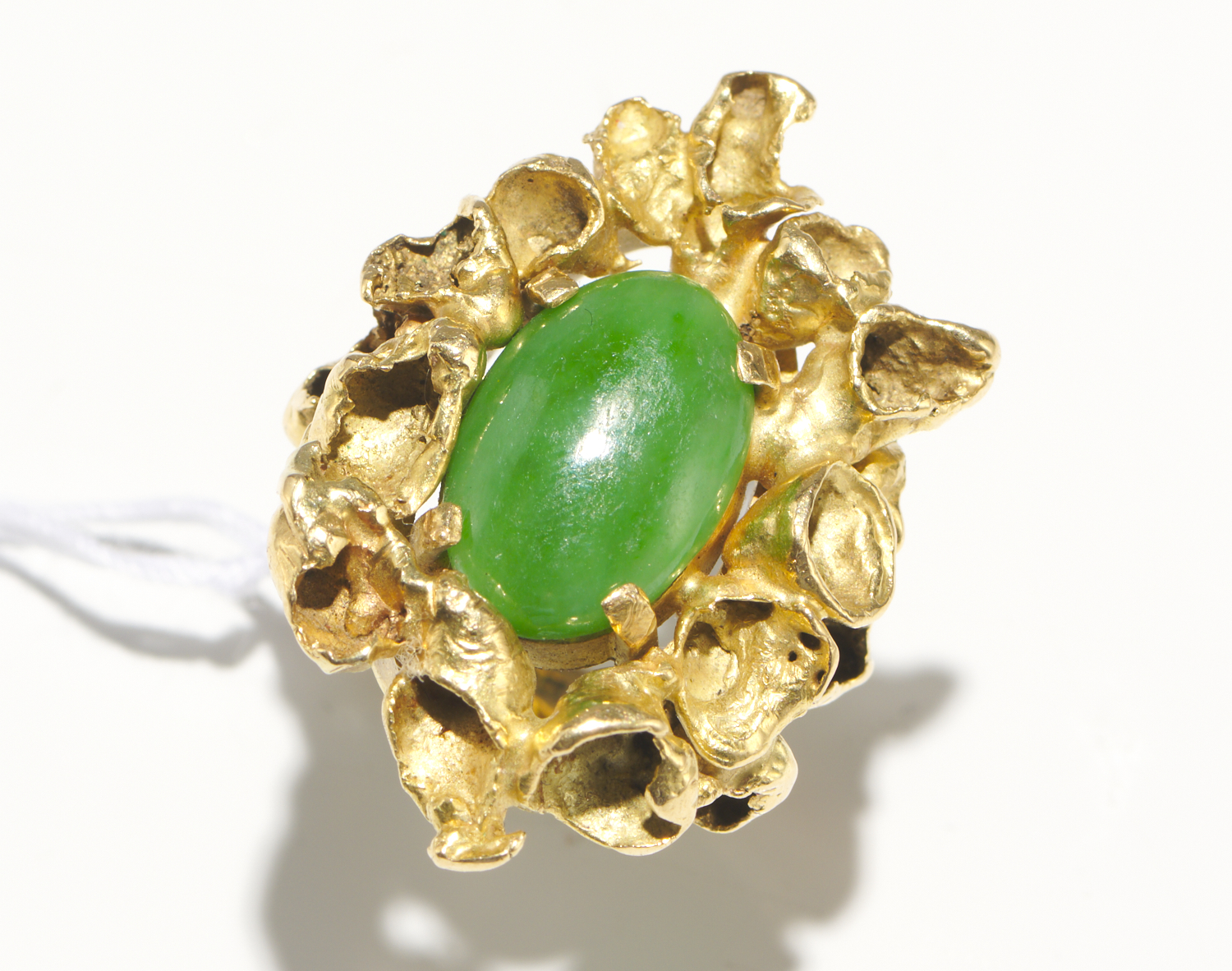 A VINTAGE JADE RING IN 18CT GOLD, RING SIZE M
