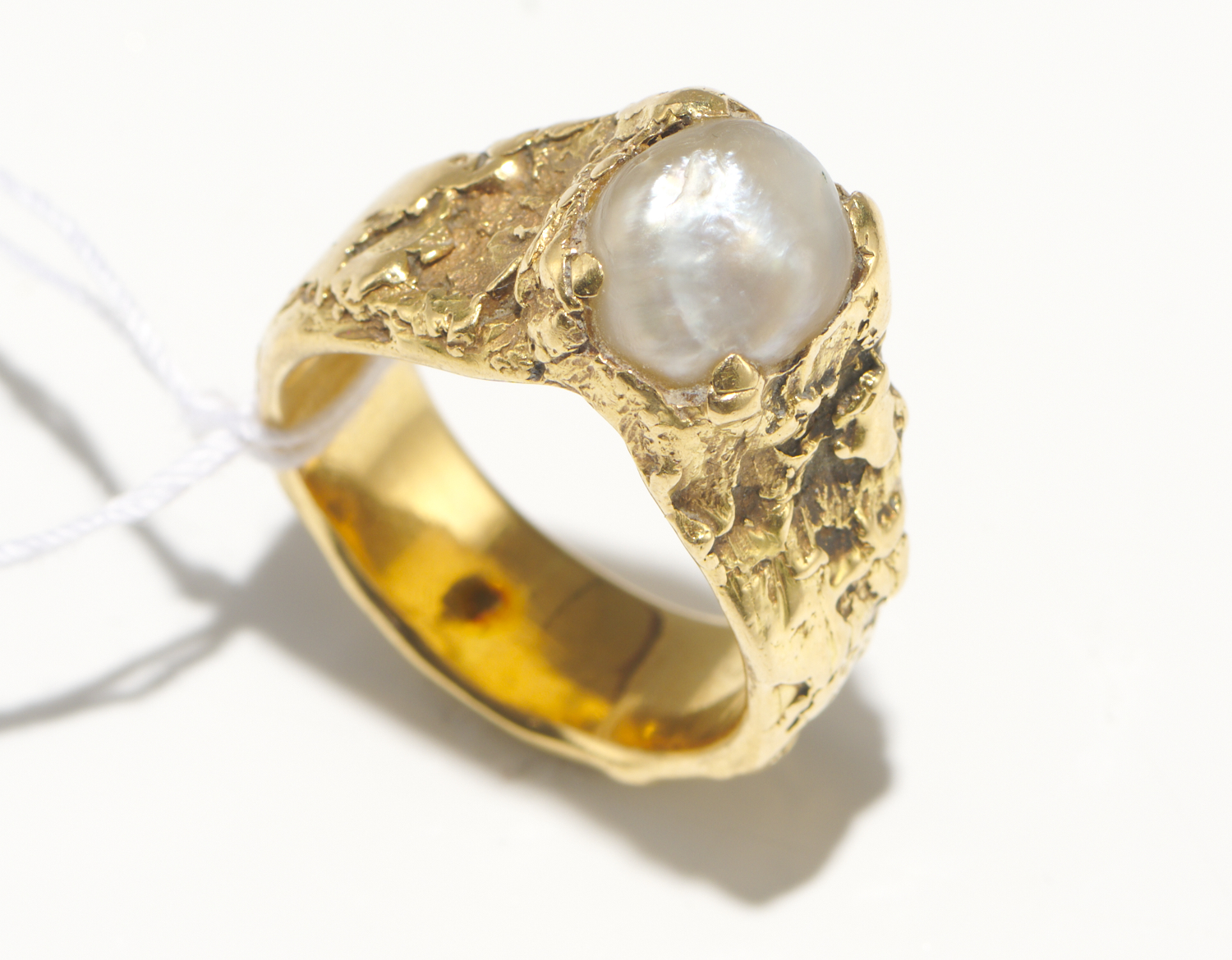 A PEARL RING BY GARY BRADLEY IN 18CT GOLD, RING SIZE M 1/2, TOTAL WEIGHT 13.1 GMS