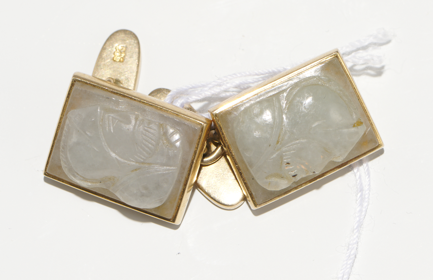 A PAIR OF CARVED AGATE CUFFLINKS IN 14CT GOLD
