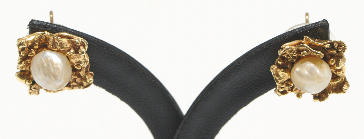 A PAIR OF PEARL EARRINGS IN 9CT GOLD