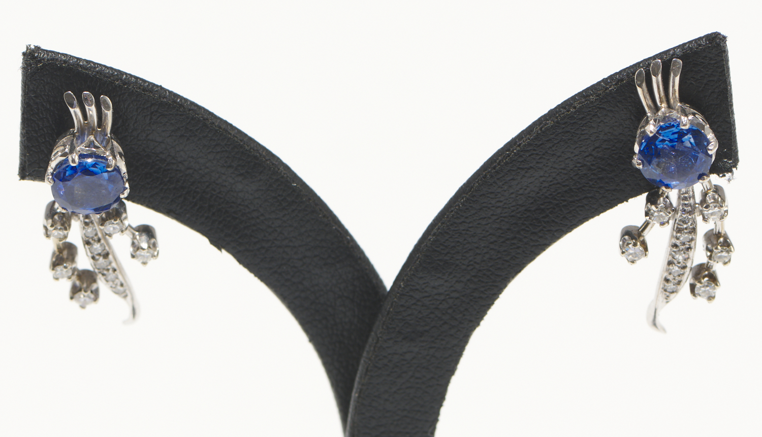 A PAIR OF SAPPHIRE AND DIAMOND COCKTAIL EARRINGS IN 14CT WHITE GOLD