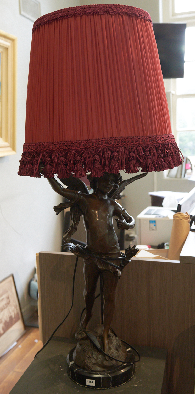 A FRENCH WINGED CHERUB BRONZE LAMP, SIGNED 'DUCHOISELLE' H.101CM, LEONARD JOEL LOCAL DELIVERY SIZE: SMALL