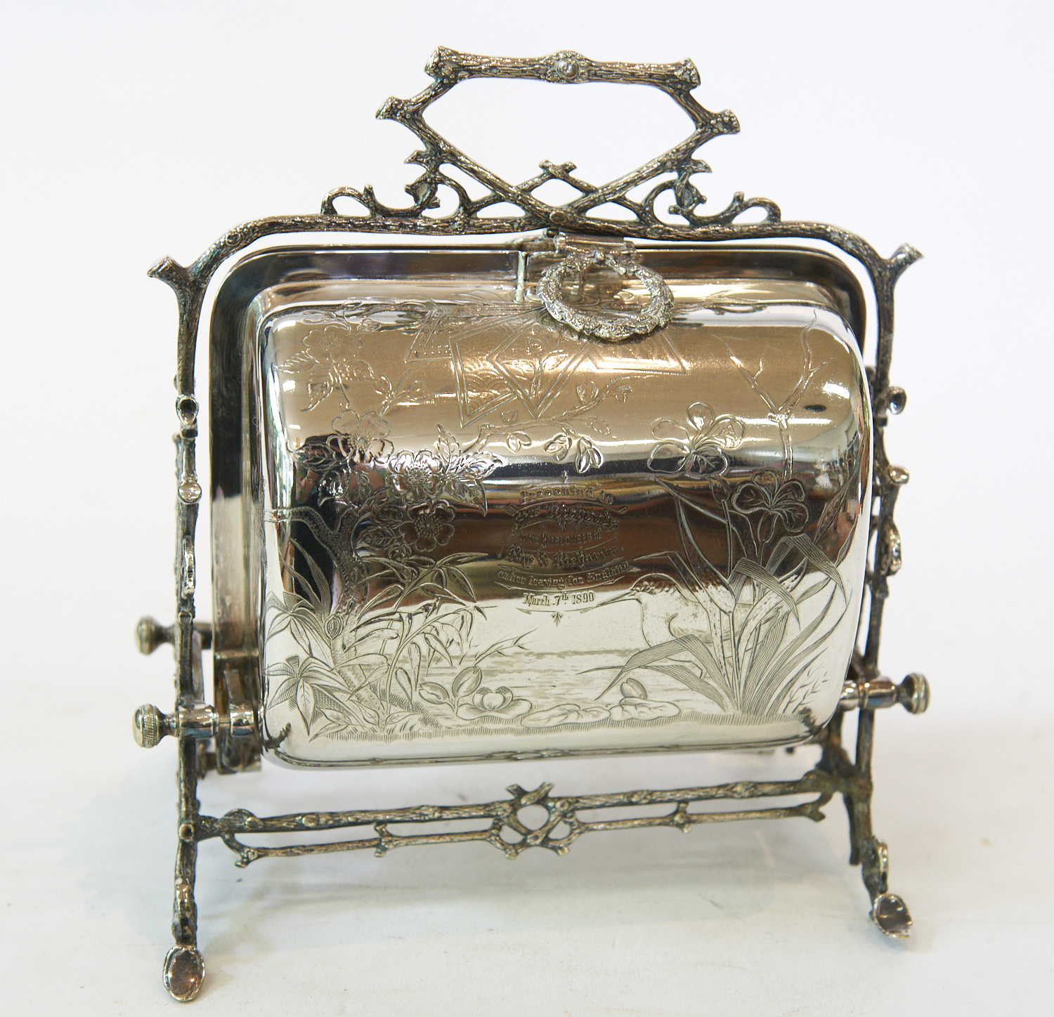 A SILVER PLATED BISCUIT BARRELL H.25CM, LEONARD JOEL LOCAL DELIVERY SIZE: SMALL