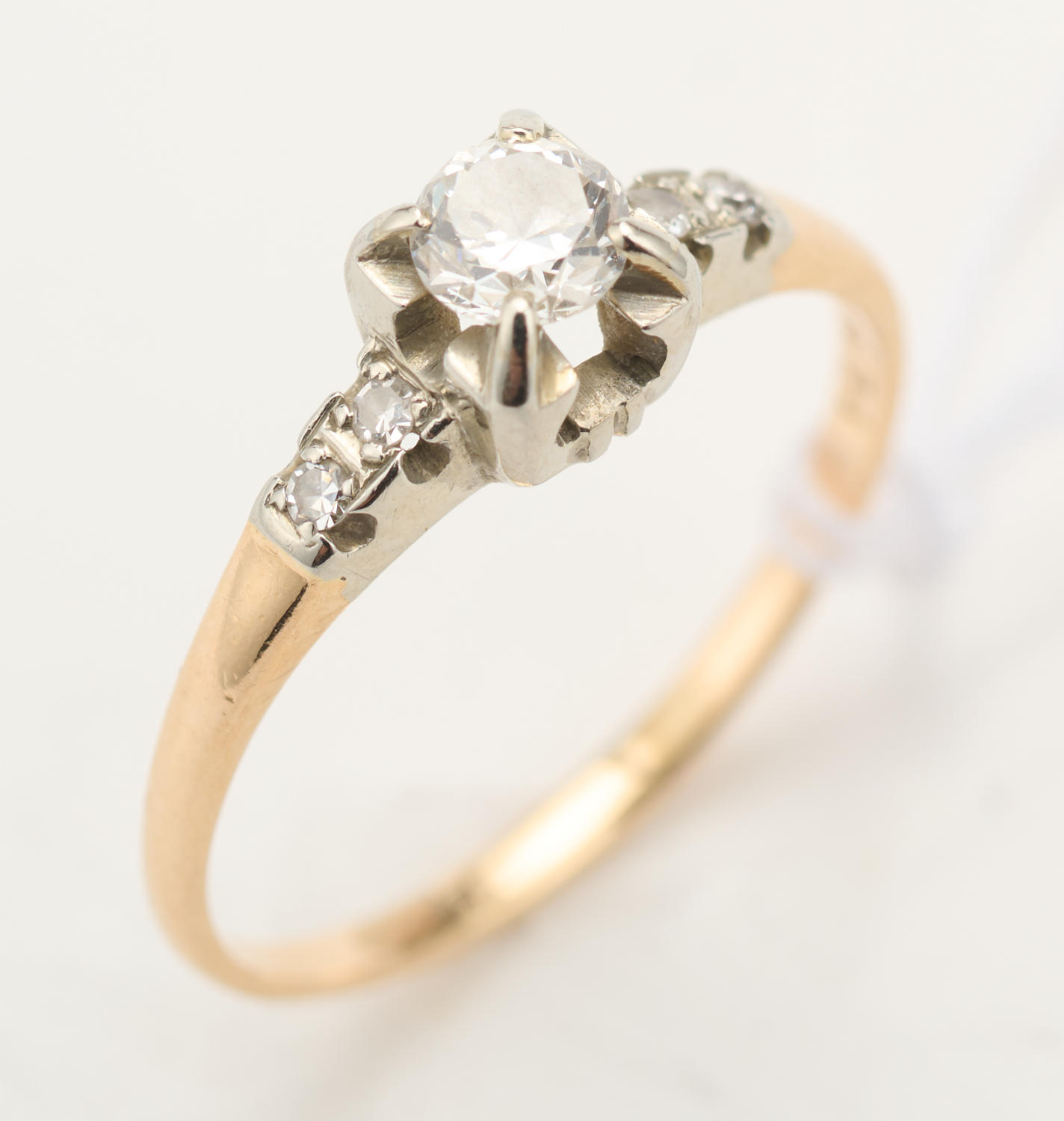 A VINTAGE DIAMOND RING IN TWO TONE 14CT GOLD, RING SIZE O