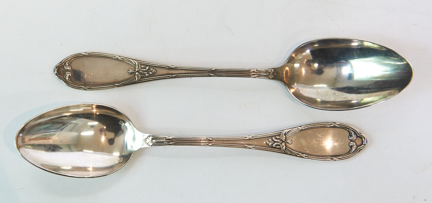 A PAIR OF RUSSIAN SILVER SPOONS, LEONARD JOEL LOCAL DELIVERY SIZE: SMALL