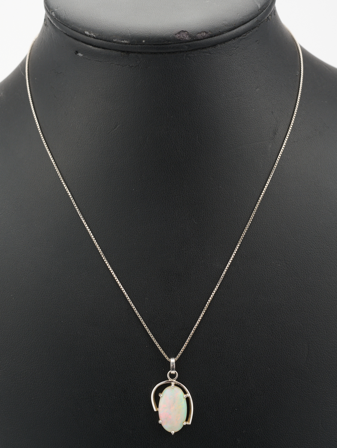 A WHITE OPAL PENDANT AND CHAIN IN 18CT WHITE GOLD