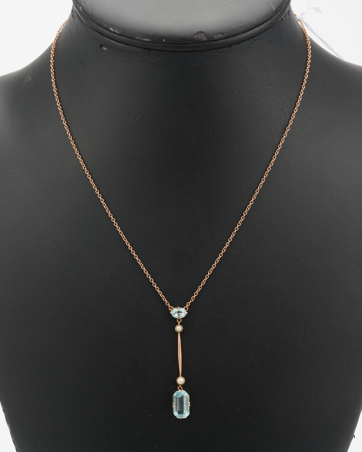 AN EDWARDIAN AQUAMARINE AND PEARL NECKLACE IN 9CT GOLD