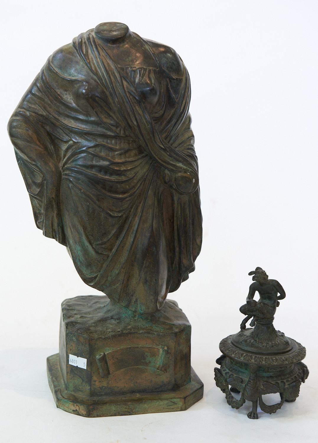 A CLASSICAL STYLE BRONZE AND DRAPED CLASSICAL FIGURE H.40CM, LEONARD JOEL LOCAL DELIVERY SIZE: SMALL