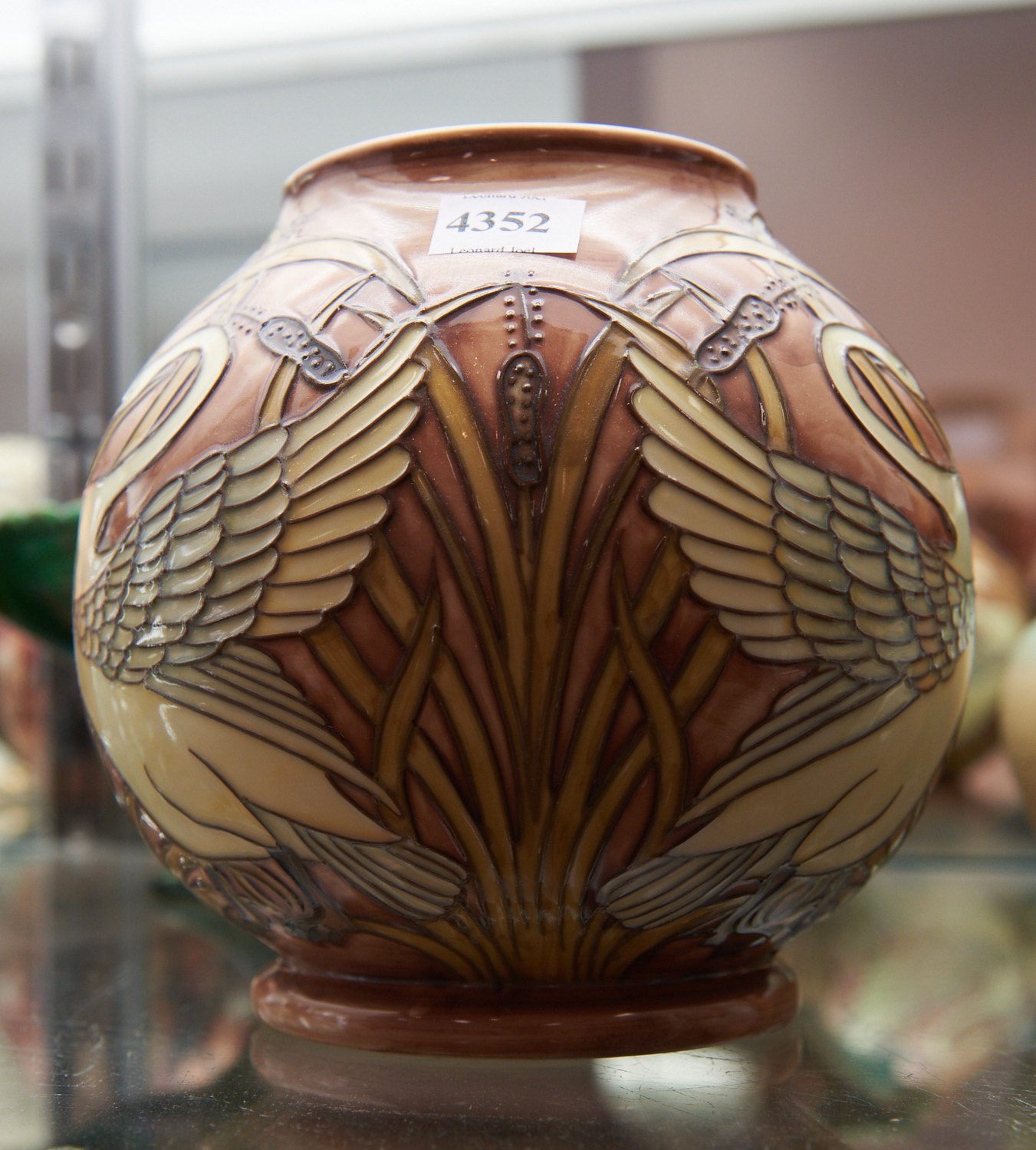 A MOORCROFT STYLE SWAN VASE H.16.5CM, LEONARD JOEL LOCAL DELIVERY SIZE: SMALL
