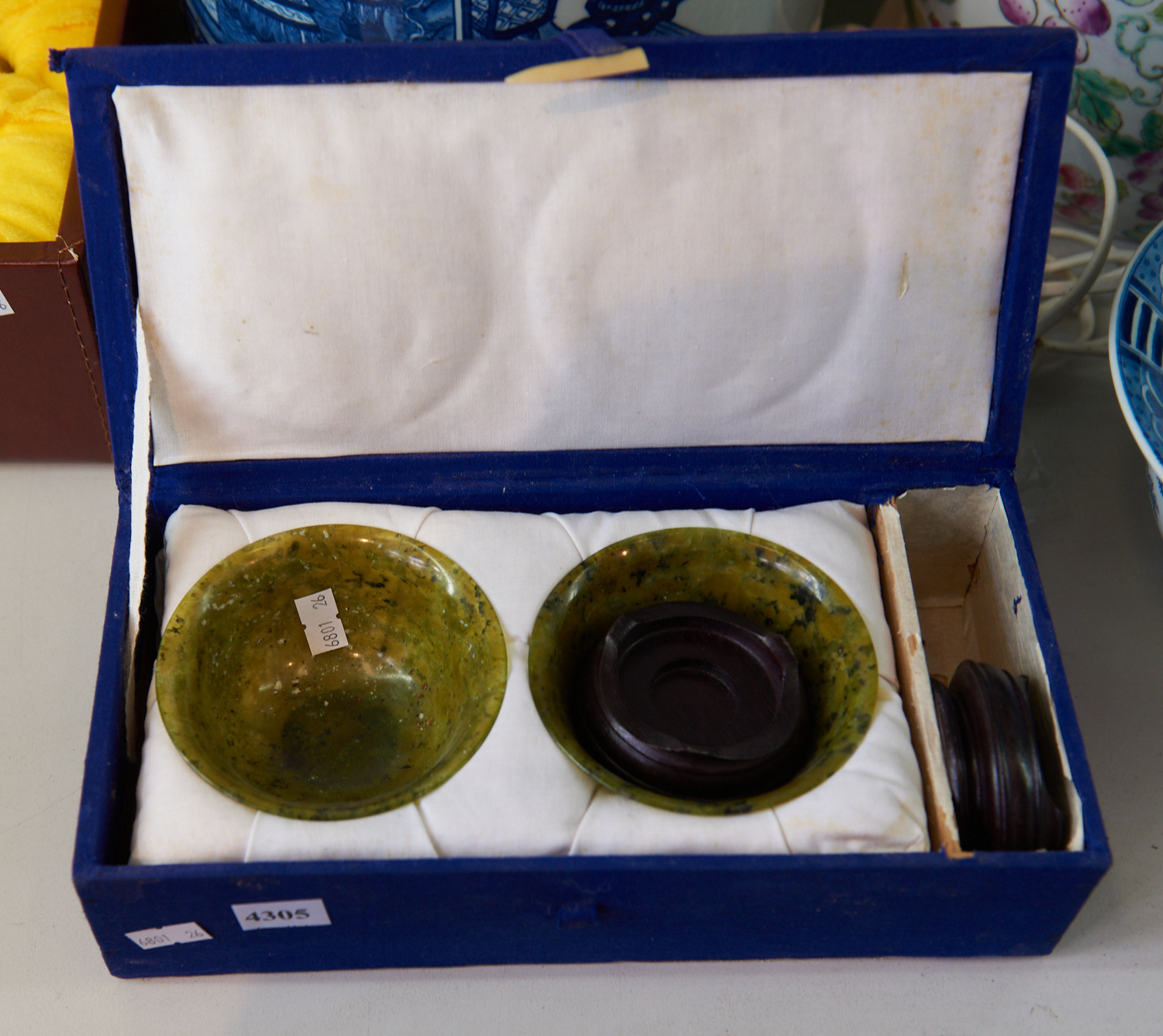 A PAIR OF CHINESE STONE BOWLS DIA.10CM , LEONARD JOEL LOCAL DELIVERY SIZE: SMALL