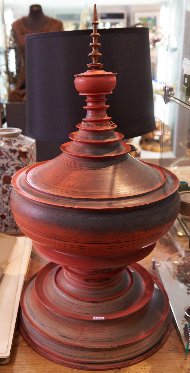 A BURMESE LACQUER OFFERING VESSEL H.64CM, LEONARD JOEL LOCAL DELIVERY SIZE: MEDIUM