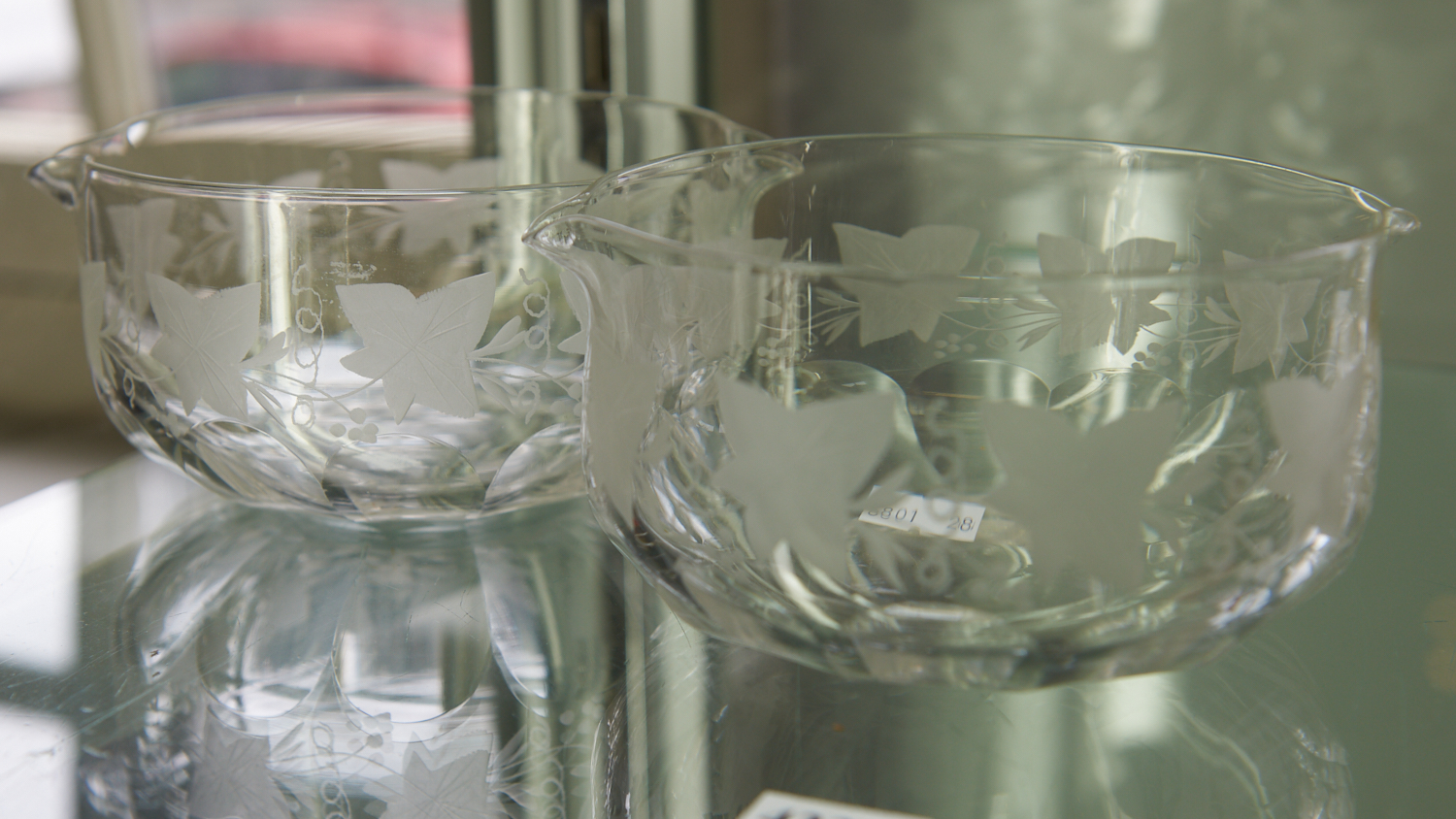 A PAIR OF ETCHED GLASS WINE RINSERS DIA.15CM, LEONARD JOEL LOCAL DELIVERY SIZE: SMALL