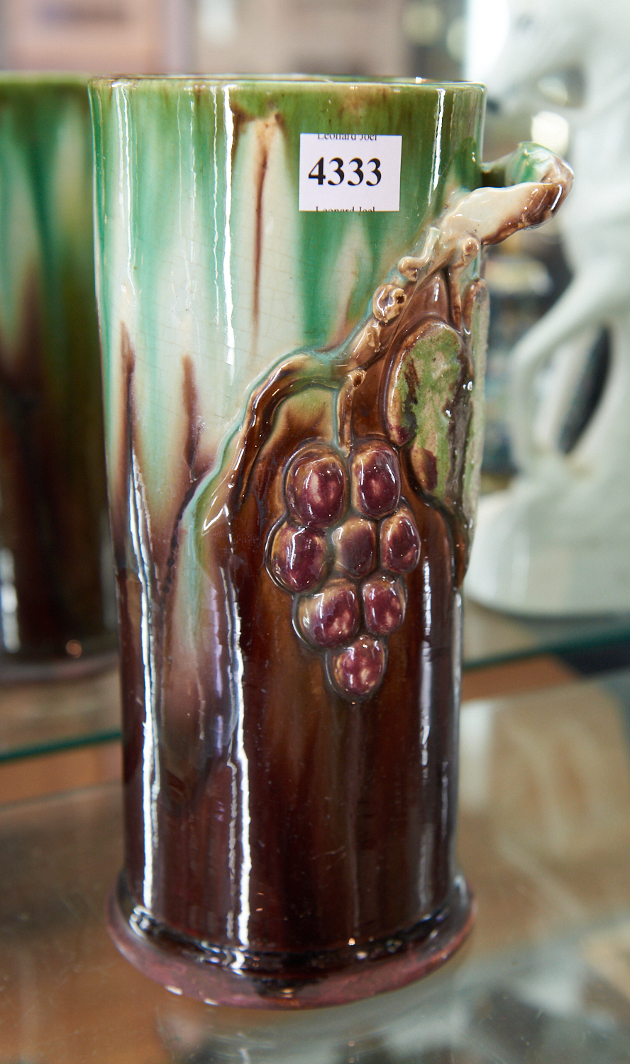 A REMUED POTTERY VASE WITH APPLIED GRAPE DECORATION, SIGNED TO BASE (24 CM H), LEONARD JOEL LOCAL DELIVERY SIZE: SMALL