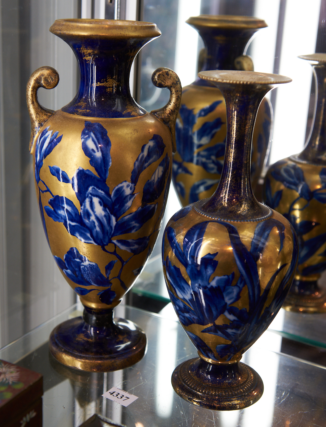 A GILT AND BLUE CERAMIC VASES H.29CM, LEONARD JOEL LOCAL DELIVERY SIZE: SMALL