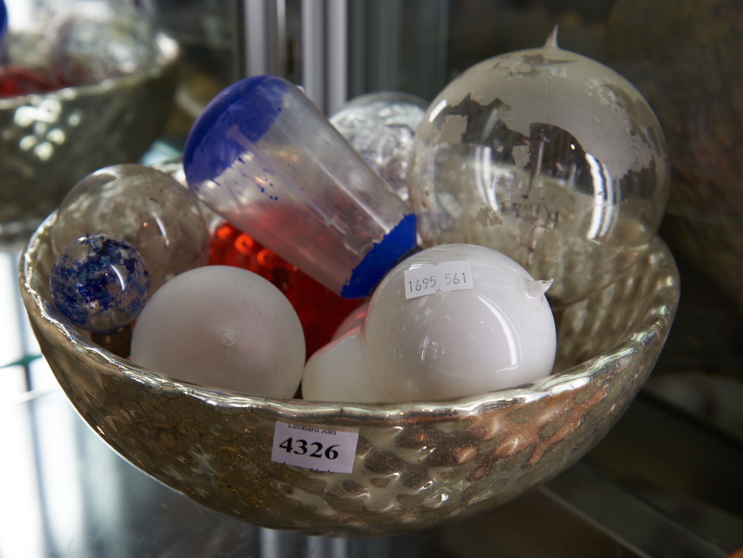 AN ASSORTMENT OF VINTAGE LIGHT GLOBES TOGETHER WITH A LAMP SHADE, LEONARD JOEL LOCAL DELIVERY SIZE: SMALL. The Estate of Rodney Permezel