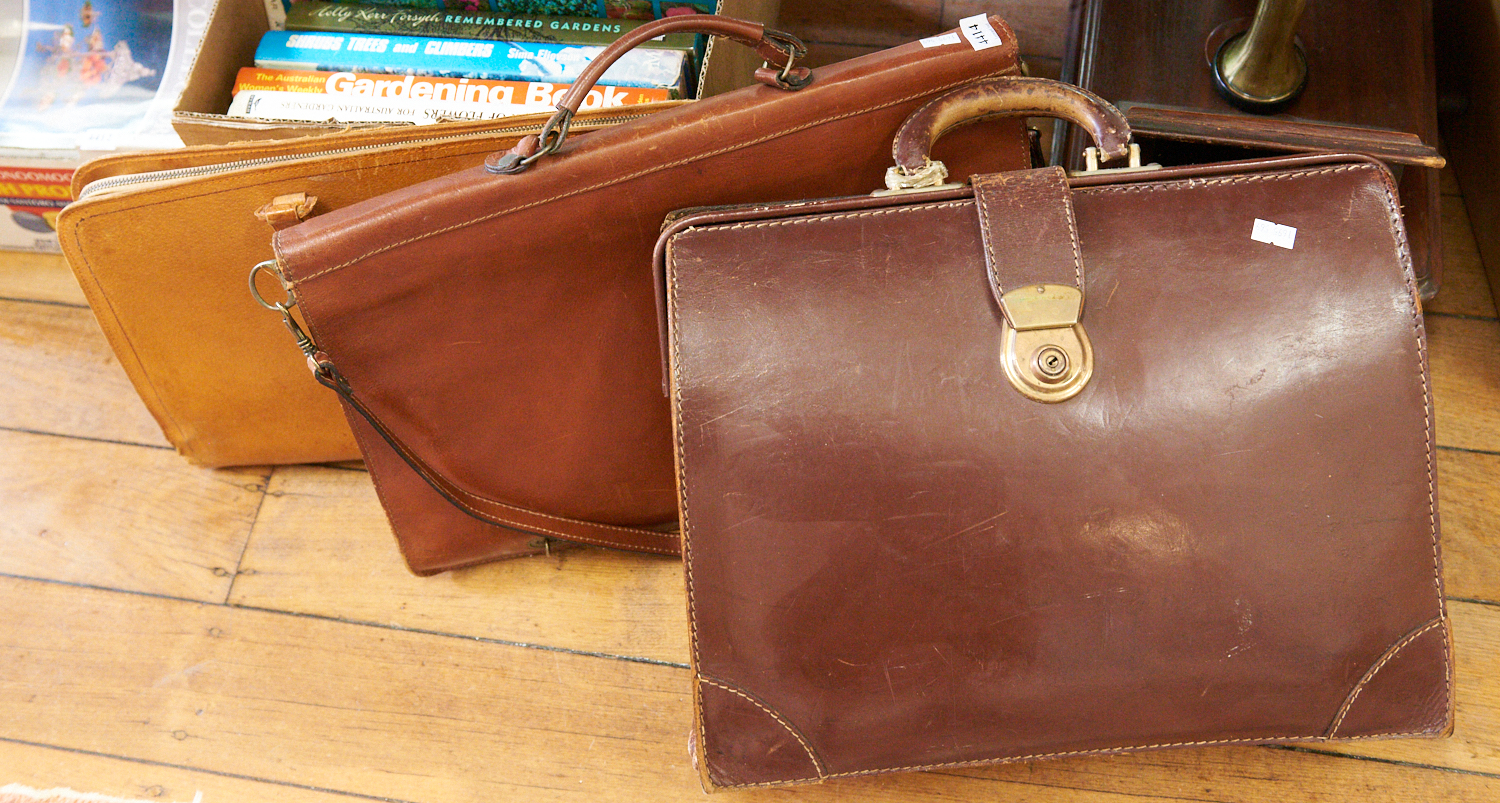 A GROUP OF THREE VINTAGE SATCHELS, LEONARD JOEL LOCAL DELIVERY SIZE: SMALL. The Estate of Rodney Permezel