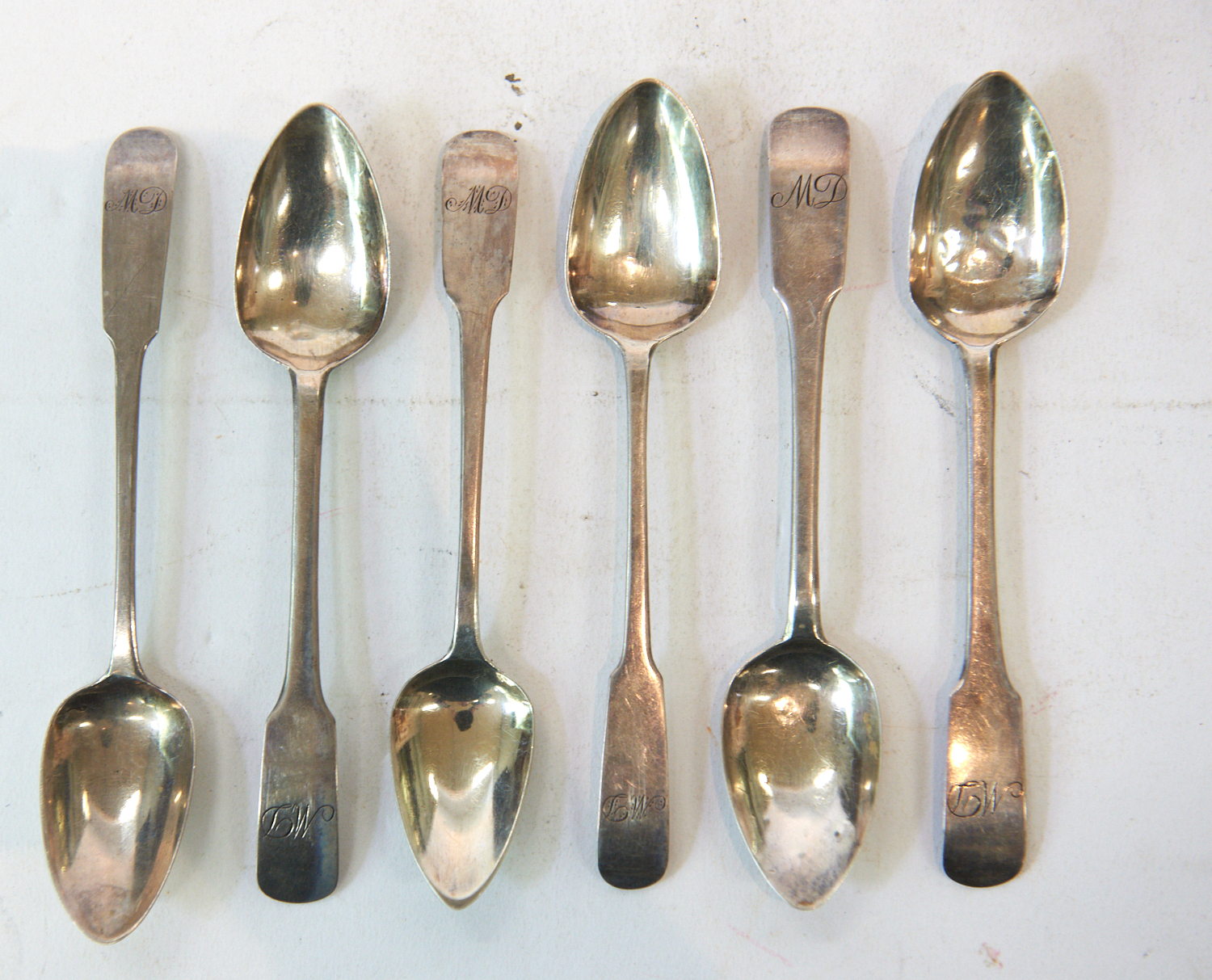 A GROUP OF SIX SCOTTISH STERLING SILVER SPOONS, 1814 AND 1815, LEONARD JOEL LOCAL DELIVERY SIZE: SMALL. The Estate of Rodney Permezel